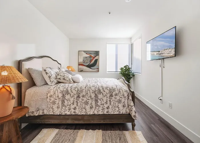 The spacious 14 Santa Monica Gorgeous Apartment is nestled in the Santa Monica district, merely 5 minutes' walk from the pizzeria Fresh Brothers. Wi-Fi and complimentary private parking are provided for guests' utmost comfort.
